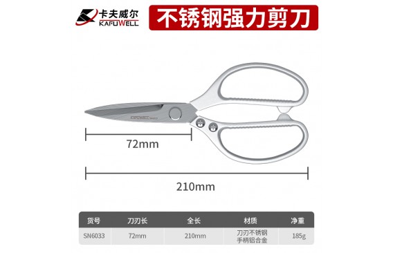 卡夫威尔不锈钢8英寸强力剪刀 刃口锋利 剪切轻松 不锈钢刀头+高强度铝合金手柄真材实料耐用剪子