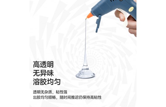 60支桶装热熔胶棒:整桶热熔胶棒高120mm,直径65mm,60根装,净重250g;单支热熔胶棒长度100mm,直径7mm,无色透明泛蓝,EVA材质,A级,单支净重3.8g;塑桶材质PET,高120mm,直径65mm