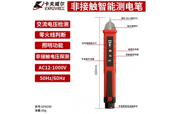 卡夫威尔智能LED数显测电笔 安全查电 绝缘操作 智能识别零火线 智能声光报警 断点检测升级自带手电筒测电笔系列