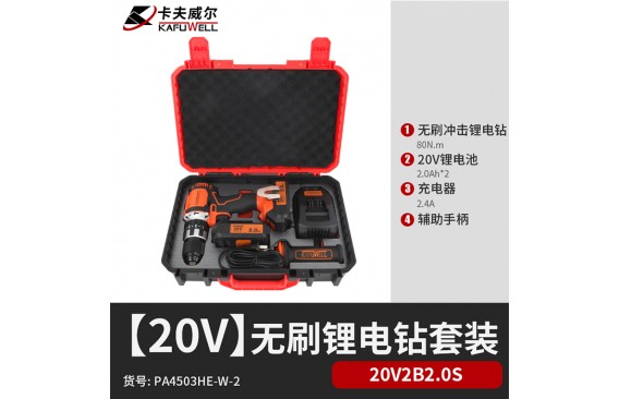 卡夫威尔20V无刷冲击锂电钻套装 无刷电机 大扭矩 持久续航 墙壁克星 多齿轮轴承 纯铜电机 轻松搞定钻孔、维修、起拧等工作