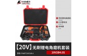 20V无刷锂电角磨机:橙黑配色,黑色全新TPE料,橙色全新尼龙料;工作电压20V,空载转速:4000-8500rpm(6档调速),带主轴锁,砂轮片安装直径:125mm,电机类型:无刷电机PW4825,符合GS,CE,EMC标准 。配件有1个固定手柄、1个金属防护罩、1片砂轮片、1个安装扳手。